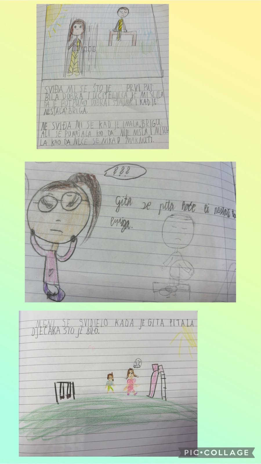 Rezultat poslušane priče u izvedbi Kaje Jerak prošle srijede ove su divne ilustracije nastale na temelju slikovnice “Gitina briga”.