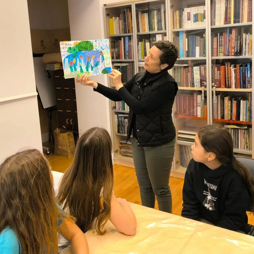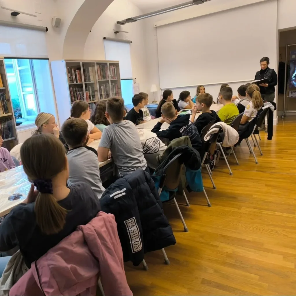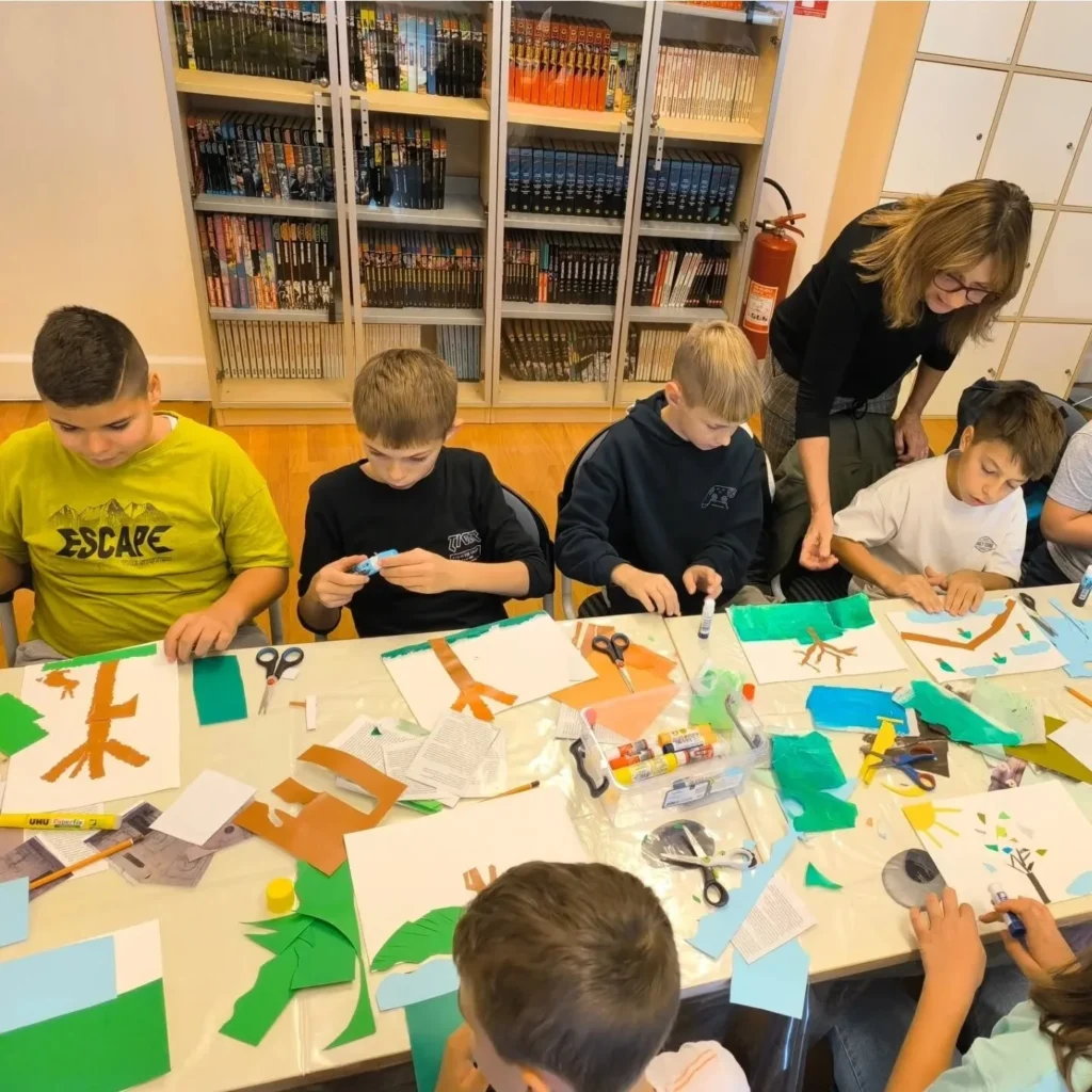 Čitateljsko-likovnoj radionici, koja je obuhvaćala izradu maštovitih slika kolaž tehnikom utemeljenima na autorskome tekstu gospođe Branke Riđički, prisustvovali su učenici 4. a razreda Osnovne škole Ivane Brlić-Mažuranić Ogulin s učiteljicom savjetnicom Alemkom Lovnički.