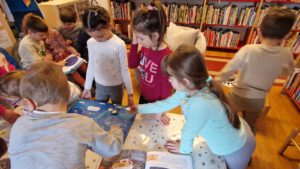 Tijekom siječnja u Knjižnici smo izrađivali Knjižnični vremenski stroj i čitali o zviježđu Velikom i malom medvjedu, o zanimljivostima i životu medvjeda.
