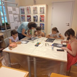 U četvrtak je održana druga kreativna radionica u sklopu “Ljeta u knjižnici”. Na radionici su djevojčice izrađivale crteže uz pomoć soli i vodenih boja. Kreativne radionice održavaju se četvrtkom u 18 sati.