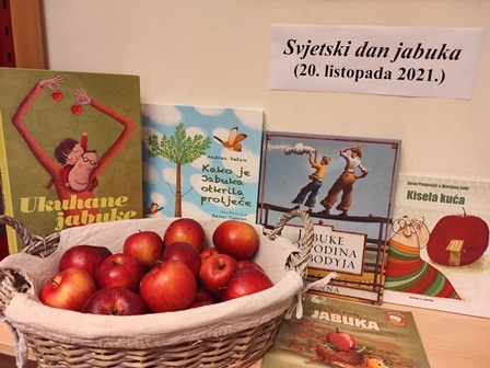 Povodom Mjeseca hrvatske knjige i Svjetskog dana jabuka, koji se obilježava u srijedu 20. listopada 2021., posjetila nas je dječja skupina Leptirići iz DV Bistrac sa svojim odgojiteljicama Bernardicom Ceranić i Marijom Brbot. Čitateljsko druženje započeli smo pričom Vuk koji je zalutao u zemlju bajki koja pripovijeda o vuku koji je namjeravao ispeći pitu od jabuka stoga je putujući iz bajke u bajku sakupljao namirnice za kolač. U Mjesecu hrvatske knjige od 15. listopada do 15. studenog djeci je darovana besplatna godišnja članarina za prvi upis i domaće jabuke za užinu.