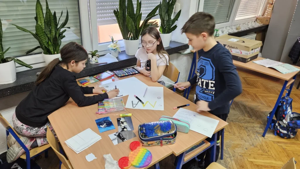 Danas smo započeli i sa izradom plakata o mačkama. Puno smo istraživali na internetu, enciklopedijama, promatrali smo ponašanje naših mačaka kod kuće i sve to zapisali. Puno je tu posla, stoga nastavljamo idući put.