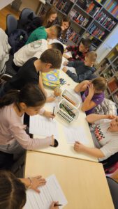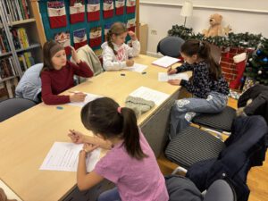 Na današnjem susretu započeli smo sa slikovnicom “Zgode kostura Janka”. Čitali smo, rješavali zadatke iz kreativne knjižice i razgovarali o narječjima.