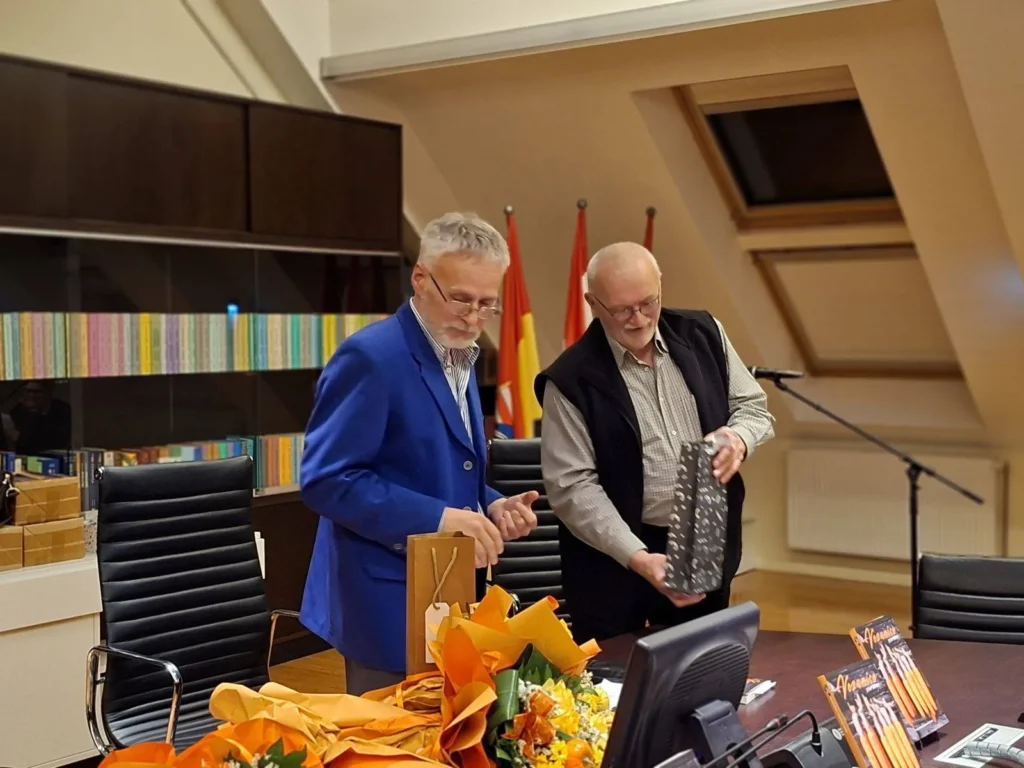 Prisutnima se uvodno obratio predsjednik Katedre Zvonko Trdić istaknuvši autorov dugogodišnji nesebičan doprinos radu Katedre, požrtvovnost i ljubav prema vlastitome kraju i ljudima. Posebnu je zahvalnost za uređivanje i pripremu knjige iskazao urednici, književnici Nadi Galant, koja nažalost nije mogla prisustvovati predstavljanju, no pročitan je njezin uvodni tekst. S puno razumijevanja i topline gđa Galant napisala je o književnome izrazu Josipa Šibarića sljedeće: 𝘈𝘶𝘵𝘰𝘳 𝘬𝘳𝘰𝘻 𝘴𝘵𝘪𝘩𝘰𝘷𝘦 𝘷𝘰𝘥𝘪 𝘱𝘰𝘦𝘵𝘴𝘬𝘪 𝘥𝘪𝘫𝘢𝘭𝘰𝘨 𝘴𝘢 𝘴𝘳𝘤𝘦𝘮 𝘬𝘰𝘫𝘦 𝘶𝘯𝘢𝘵𝘰𝘤̌ 𝘱𝘳𝘰𝘵𝘰𝘬𝘶 𝘷𝘳𝘦𝘮𝘦𝘯𝘢 𝘯𝘪𝘫𝘦 𝘱𝘳𝘦𝘴𝘵𝘢𝘭𝘰 𝘴𝘢𝘯𝘫𝘢𝘵𝘪 𝘰 𝘭𝘫𝘶𝘣𝘢𝘷𝘪. 𝘕𝘫𝘦𝘨𝘰𝘷𝘦 𝘯𝘢𝘴 𝘱𝘫𝘦𝘴𝘮𝘦 𝘱𝘰𝘥𝘴𝘫𝘦𝘤́𝘢𝘫𝘶 𝘯𝘢 𝘵𝘰 𝘬𝘢𝘬𝘰 𝘴𝘶 𝘪 𝘯𝘢𝘪𝘻𝘨𝘭𝘦𝘥 𝘴𝘷𝘢𝘬𝘰𝘥𝘯𝘦𝘷𝘯𝘦 𝘴𝘵𝘷𝘢𝘳𝘪, 𝘱𝘢 𝘤̌𝘢𝘬 𝘪 𝘴𝘪𝘵𝘯𝘪𝘤𝘦 𝘬𝘰𝘫𝘦 𝘤̌𝘦𝘴𝘵𝘰 𝘱𝘳𝘰𝘭𝘢𝘻𝘦 𝘯𝘦𝘱𝘳𝘪𝘮𝘪𝘫𝘦𝘤́𝘦𝘯𝘦, 𝘪𝘴𝘱𝘶𝘯𝘫𝘦𝘯𝘦 𝘻𝘯𝘢𝘤̌𝘦𝘯𝘫𝘦𝘮 𝘪 𝘭𝘫𝘦𝘱𝘰𝘵𝘰𝘮. 𝘖𝘯𝘦 𝘯𝘢𝘴 𝘱𝘰𝘵𝘪𝘤̌𝘶 𝘥𝘢 𝘻𝘢𝘴𝘵𝘢𝘯𝘦𝘮𝘰, 𝘶𝘥𝘢𝘩𝘯𝘦𝘮𝘰 𝘵𝘳𝘦𝘯𝘶𝘵𝘢𝘬 𝘪 𝘱𝘳𝘰𝘯𝘢đ𝘦𝘮𝘰 𝘳𝘢𝘥𝘰𝘴𝘵 𝘶 𝘰𝘤̌𝘦𝘬𝘪𝘷𝘢𝘯𝘫𝘶, 𝘶 𝘮𝘢𝘭𝘪𝘮 𝘻𝘯𝘢𝘬𝘰𝘷𝘪𝘮𝘢 𝘬𝘰𝘫𝘪 𝘻̌𝘪𝘷𝘰𝘵 𝘤̌𝘪𝘯𝘦 𝘣𝘰𝘨𝘢𝘵𝘪𝘫𝘪𝘮.