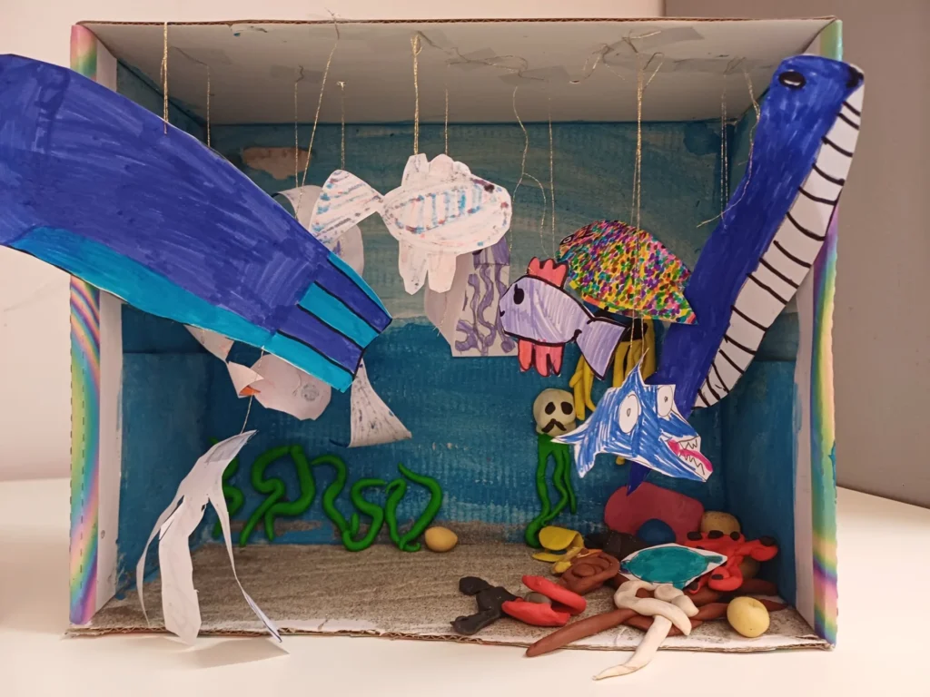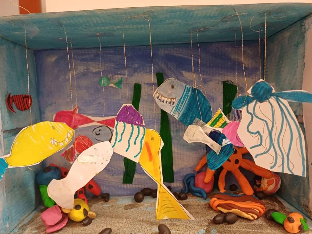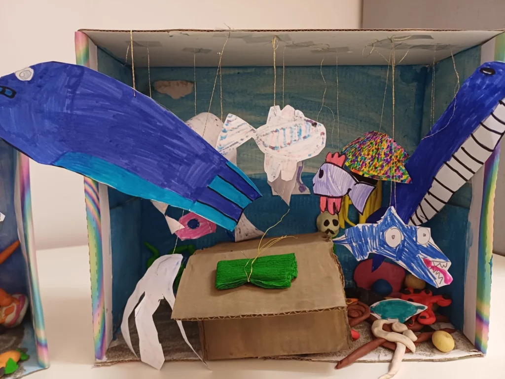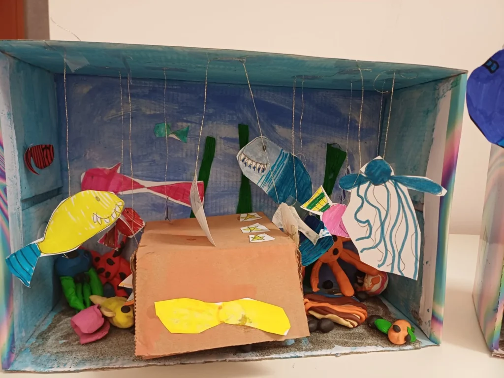 Nakon razgovora o slikovnici, učenicu su izrađivali nagradni zadatak morsko dno i škrinju s blagom.