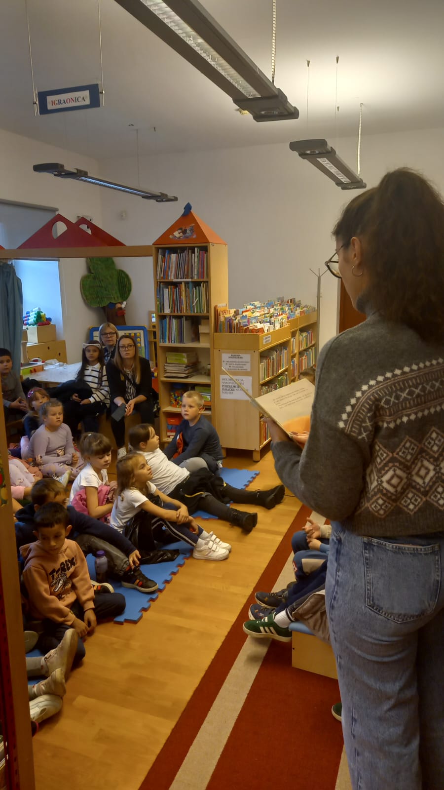 Učenike smo vodili u obilazak knjižnice, a zatim su poslušali priču “Figaro” o jednom seoskom mačku koji je jako volio popodnevni odmor, ali je njegovo hrkanje uznemiravalo ostale životinje na farmi.