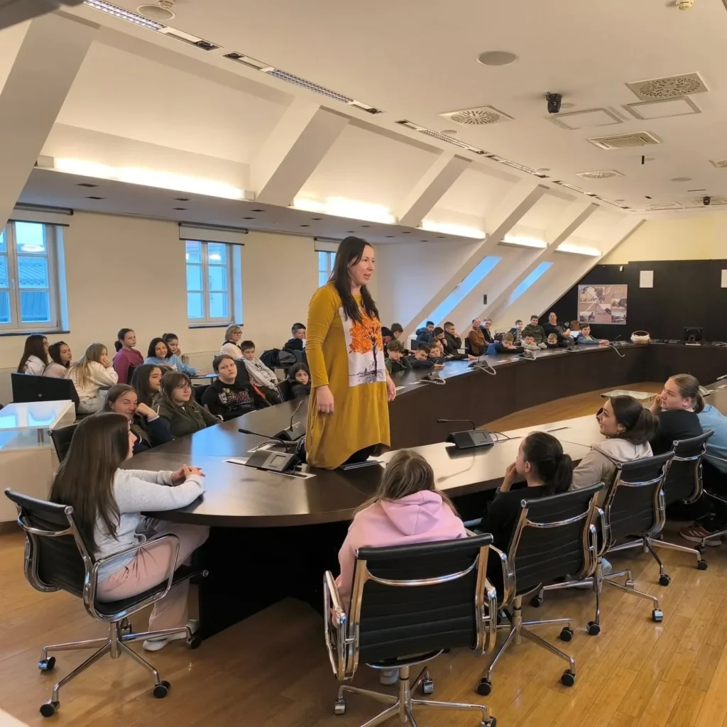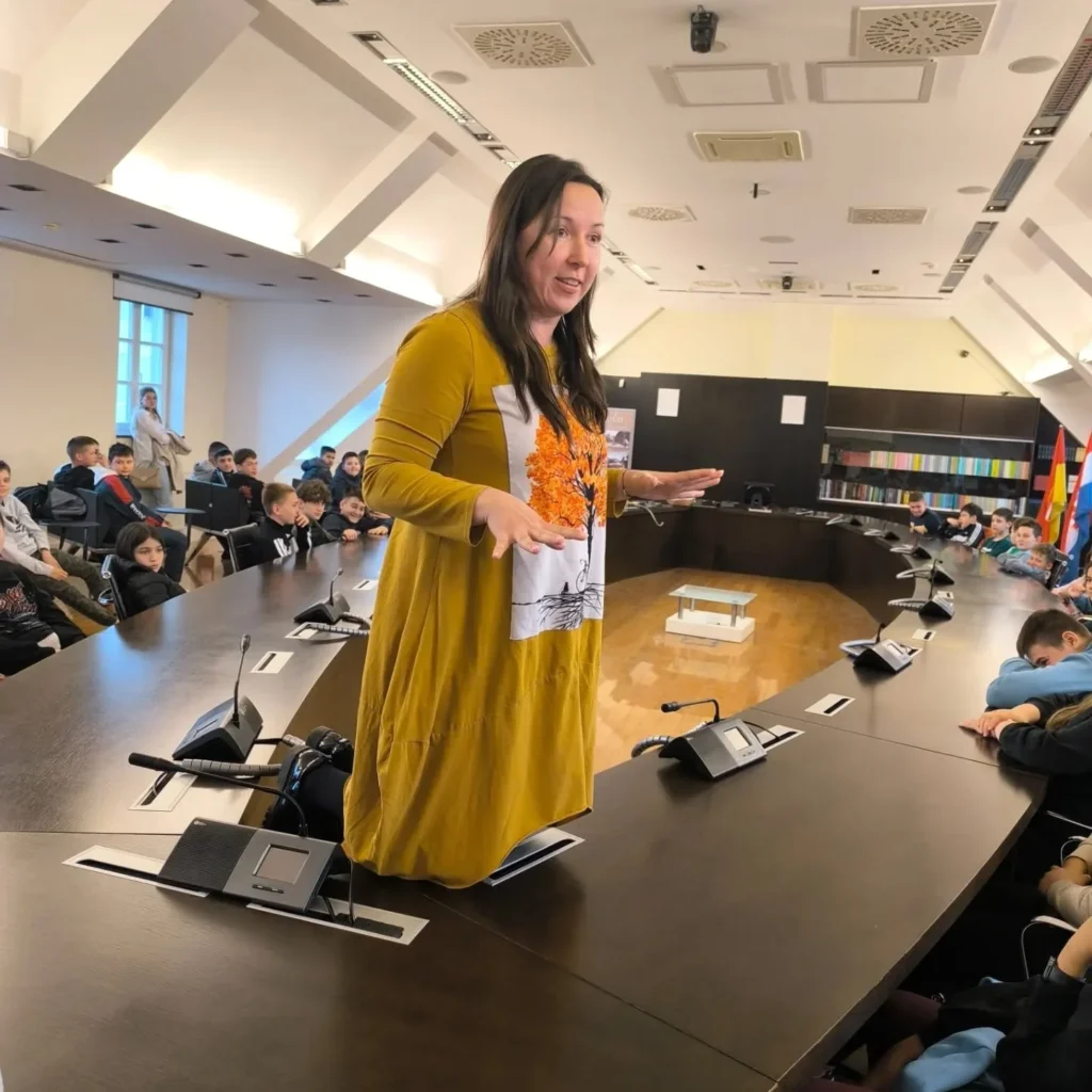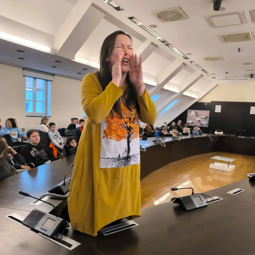 Veliko hvala učenicima, učiteljima i knjižničarkama na dolasku i sudjelovanju u interaktivnom pripovijedanju Danijele Miklec koja je na jedan vješt i zanimljiv način u samom središtu dvorane uz mnogobrojne rekvizite oživjela magičnu ljepotu Ivanine bajke “Jagor”.