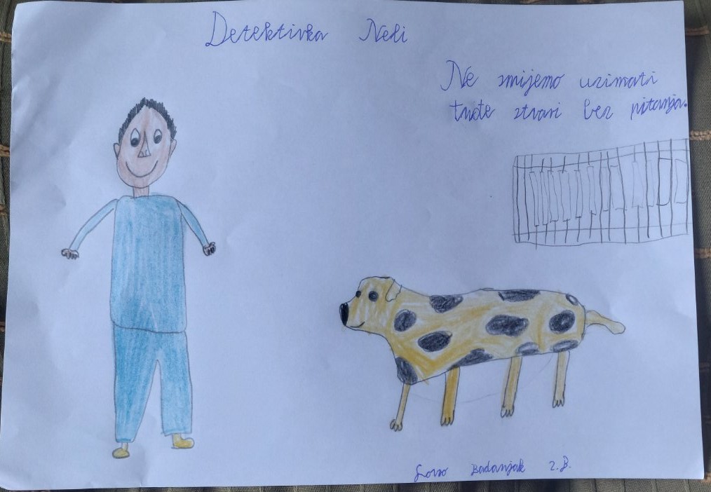 Lovro Badanjak, učenik 2.b razreda Osnovne škole Ivane Brlić-Mažuranić Ogulin na čelu s učiteljicom Jasminom Prerad, napravio je ilustraciju nastalu na temelju poslušane slikovnice “Detektivka Neli” u izvedbi Doris Barko.