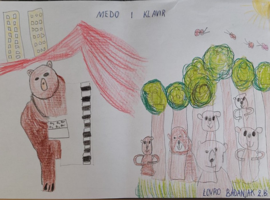 Lovro Badanjak, učenik 2.b razreda Osnovne škole Ivane Brlić-Mažuranić Ogulin na čelu s učiteljicom Jasminom Prerad, napravio je ilustraciju nastalu na temelju poslušane slikovnice “Medo i klavir” u izvedbi Luči Vukelić.