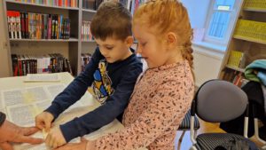 U srijedu smo susret Naše male knjižnice s vrtićkom skupinom Ribice iz DV Bistrac započeli s čitanjem i promatranjem umjetničke slikovnice “Djevojčica i medo” koja govori o prijateljstvu i odrastanju.