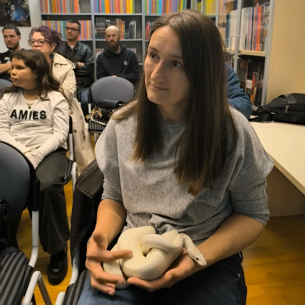 Zahvaljujući izvrsnom sinoćnjem multimedijalnom edukativnom predavanju neurodivergentne biologinje i arahnologinje Ive Čupić, većina zainteresiranih posjetitelja, osim što je saznala mnoštvo korisnih informacija o mnogobrojnim zmijskim vrstama na području grada Ogulina i okolice, prevladala je strah uzevši u ruke Krafnicu – kraljevskog pitona.